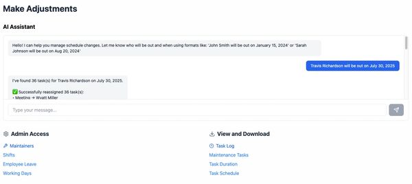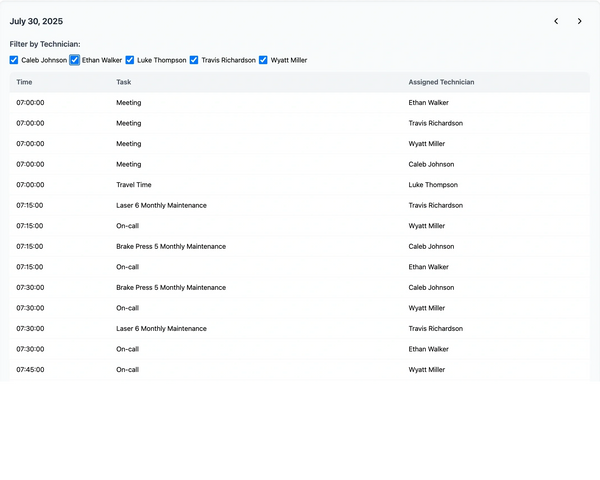 Once PM tasks are created we develop a bespoke schedule based upon your organizations working hours and individual maintenance needs. This schedule is fully automated, requiring only plain text inputs for changes, and updates itself to match the challenges your organization faces